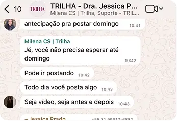 Cada aluna tem um grupo com nossa equipe para acompanhamento mais próximo!